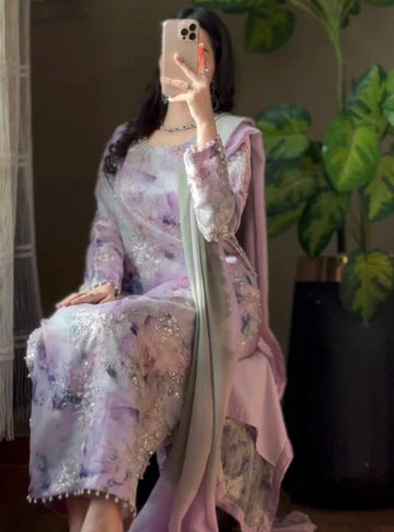 Shisha Silk Embroidered & Sequin Work 3-Piece Suit – Pastel Lilac