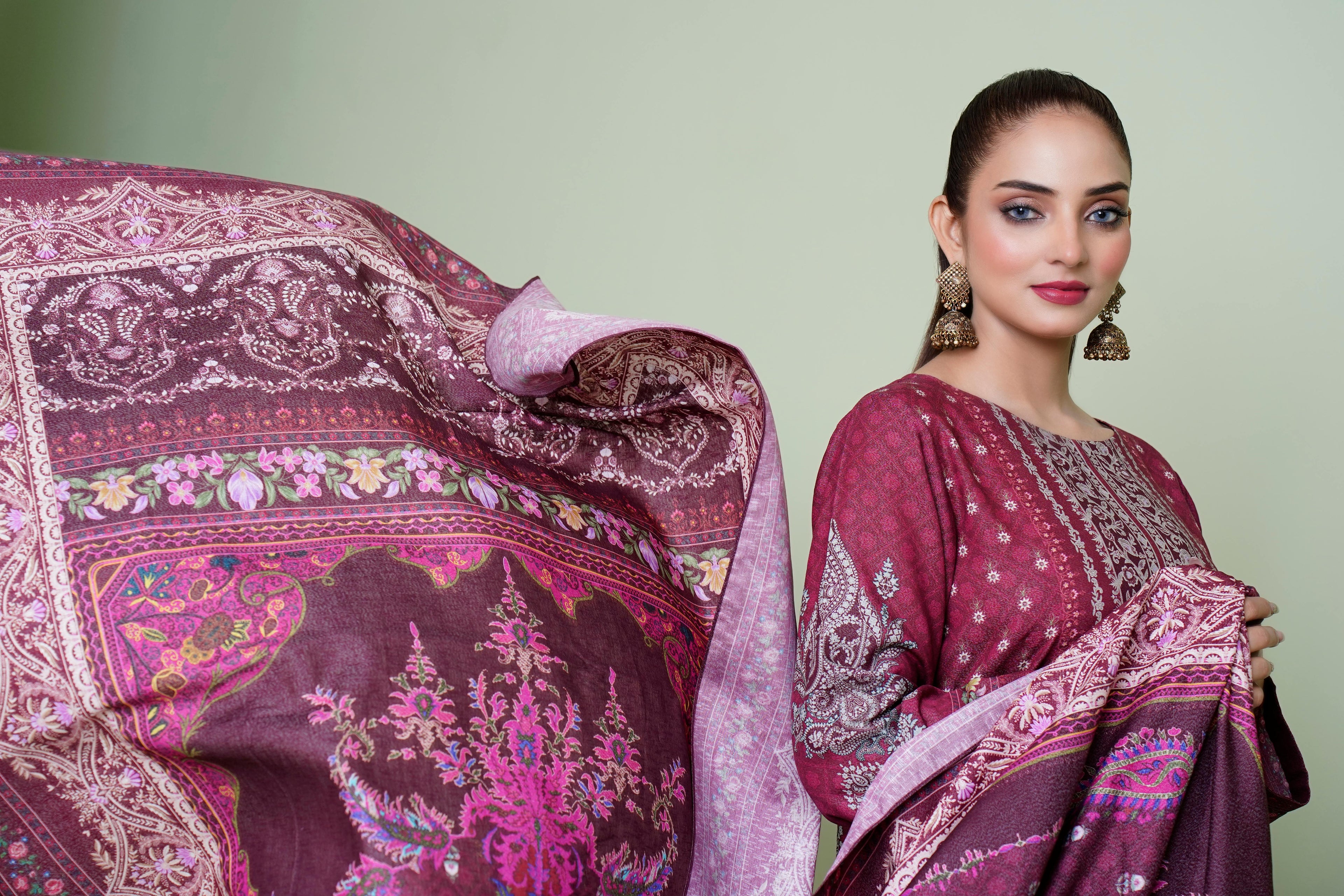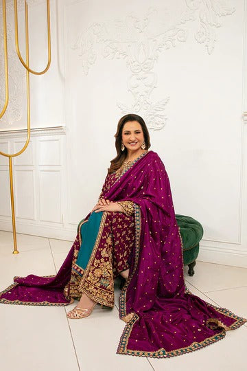 Royal Deep Plum Embroidered Velvet 3-Piece Suite – Winter Festive Edition