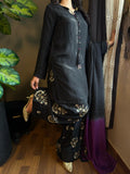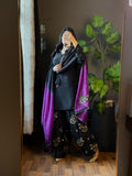 Black & Purple Embroidered Raw Silk Farshi Suit