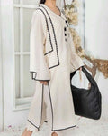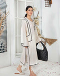 This exuisite lawn suit features an embellished black pices designing, adorned with stunning lawn trouser.